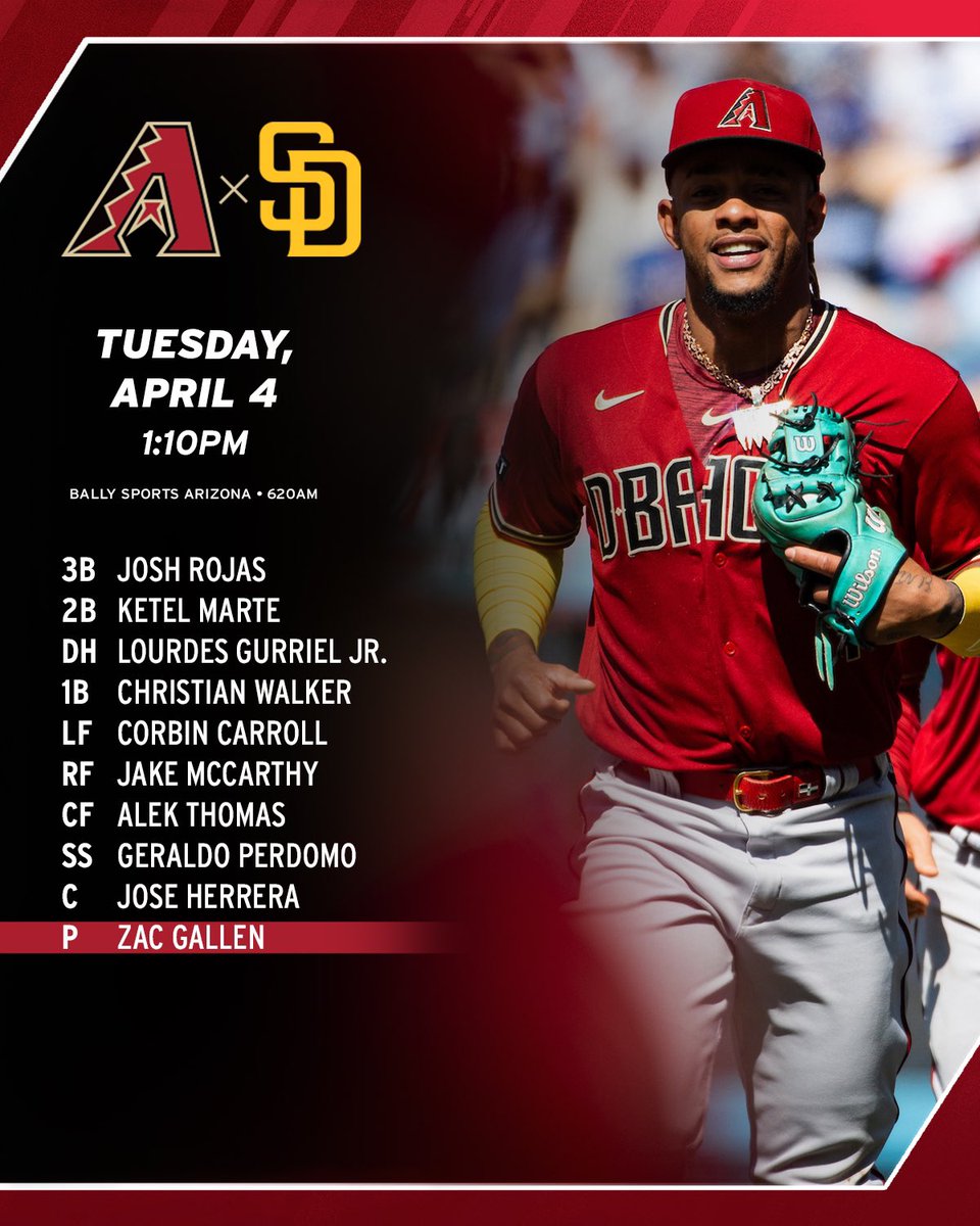 先發投手 : (R) Zac Gallen 0W-1L ERA 9.64