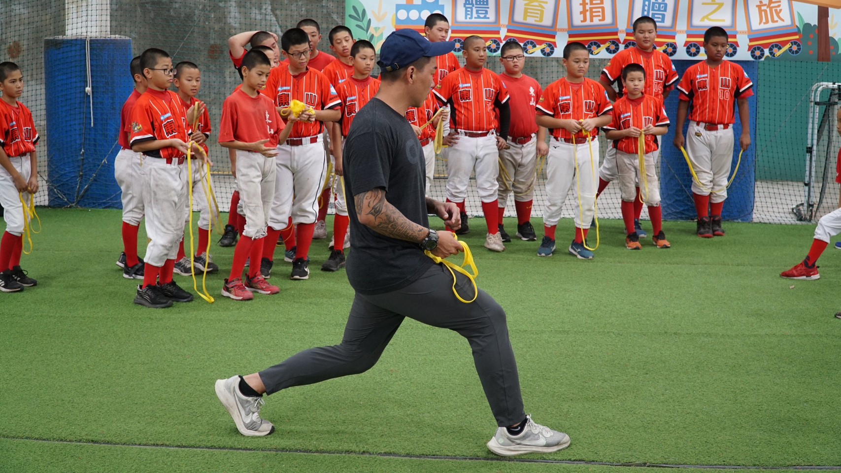 」郭泓志與林正豐教練到場與小球員互動,加強他們運動訓練科學觀念及操作!