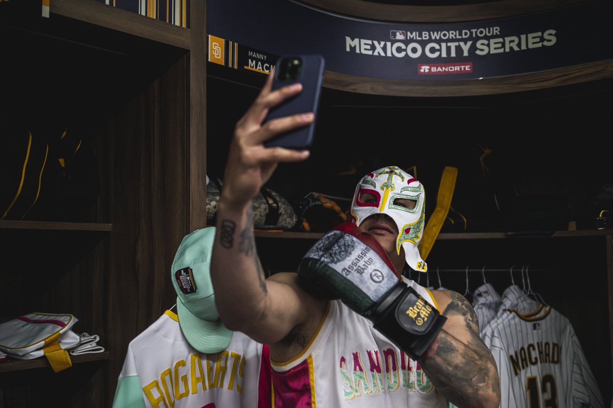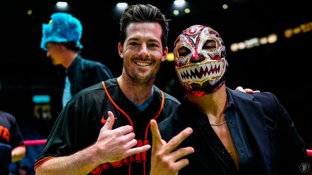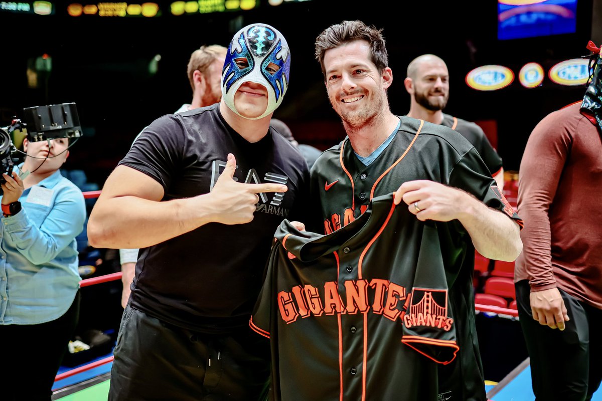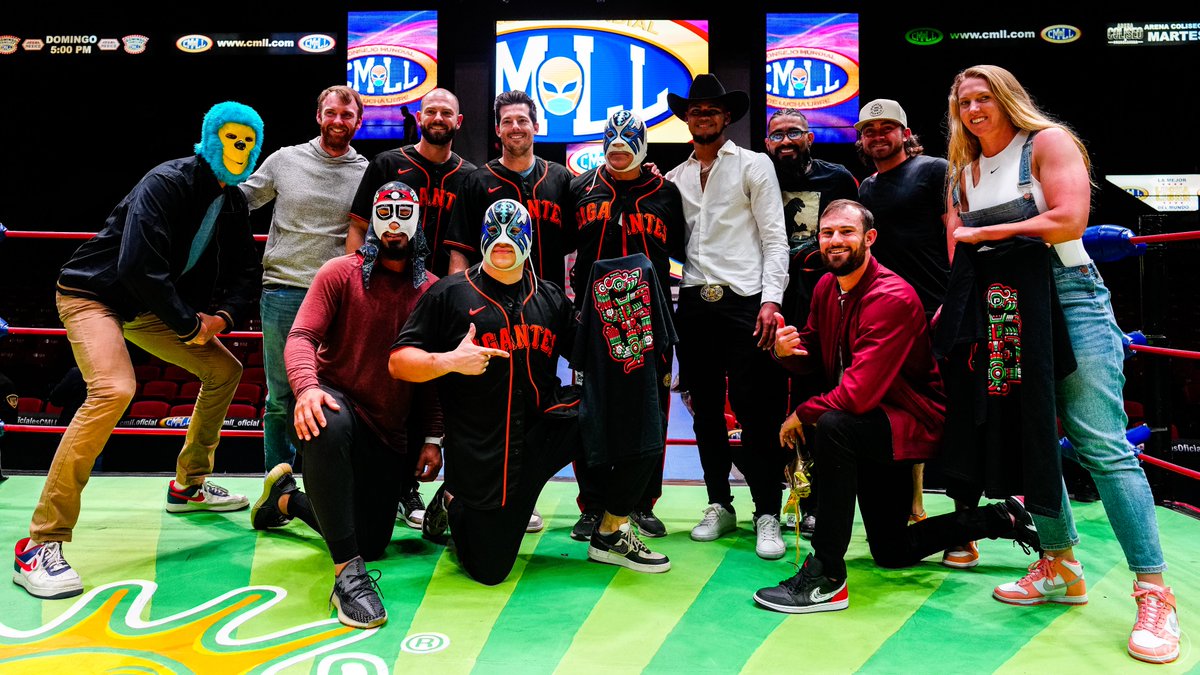 巨人隊球員們前一晚受邀體驗墨西哥摔角 並與摔角手合影
