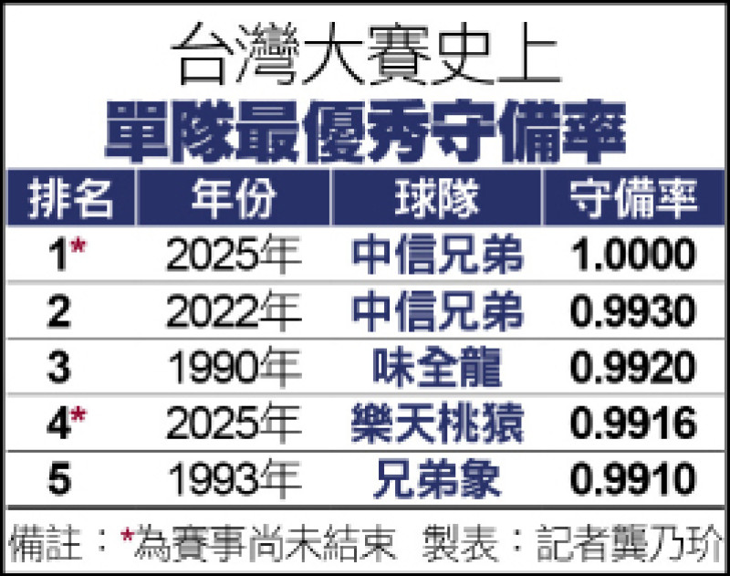 年的兄弟和2023年樂天曾達成這項壯舉,過去還不曾出現單隊單年台灣大賽無失誤收尾,