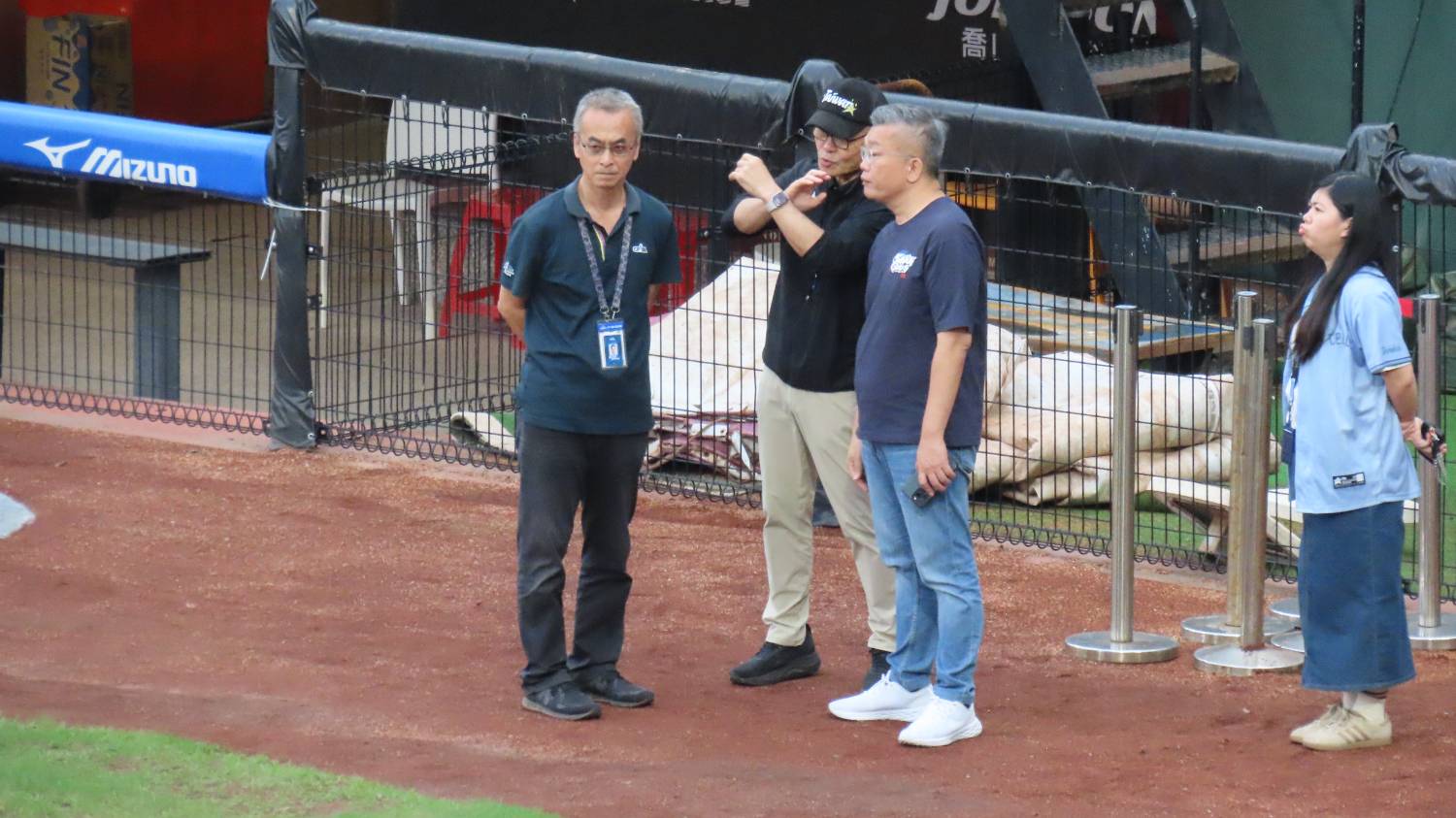 隊教頭古久保健二與翻譯一起到場上內野、外野都巡視一圈。