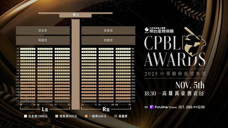 [新聞] 中職》頒獎典禮移師高雄 明天中午開賣門票