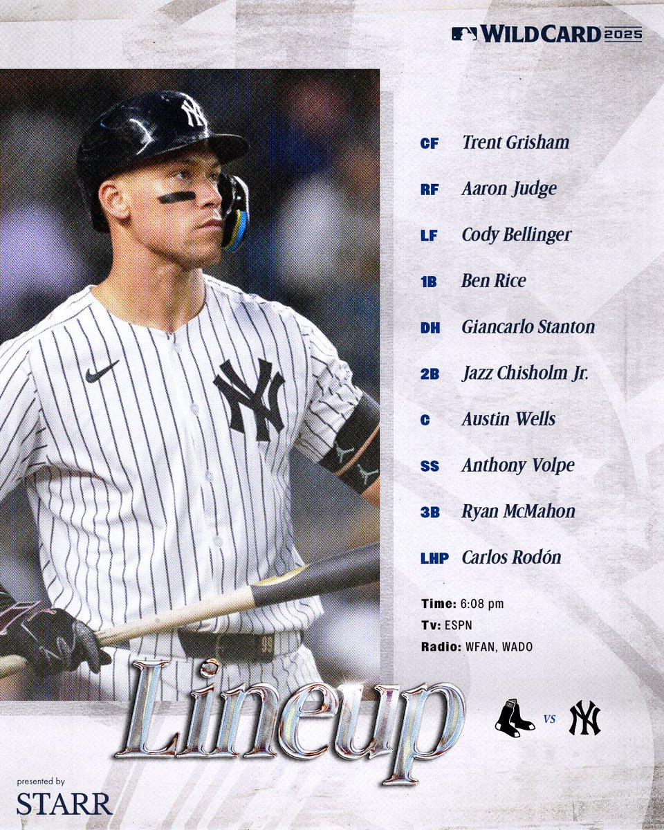 [LIVE] (MLB) BOS @ NYY 2025美聯外卡系列戰 G2置底