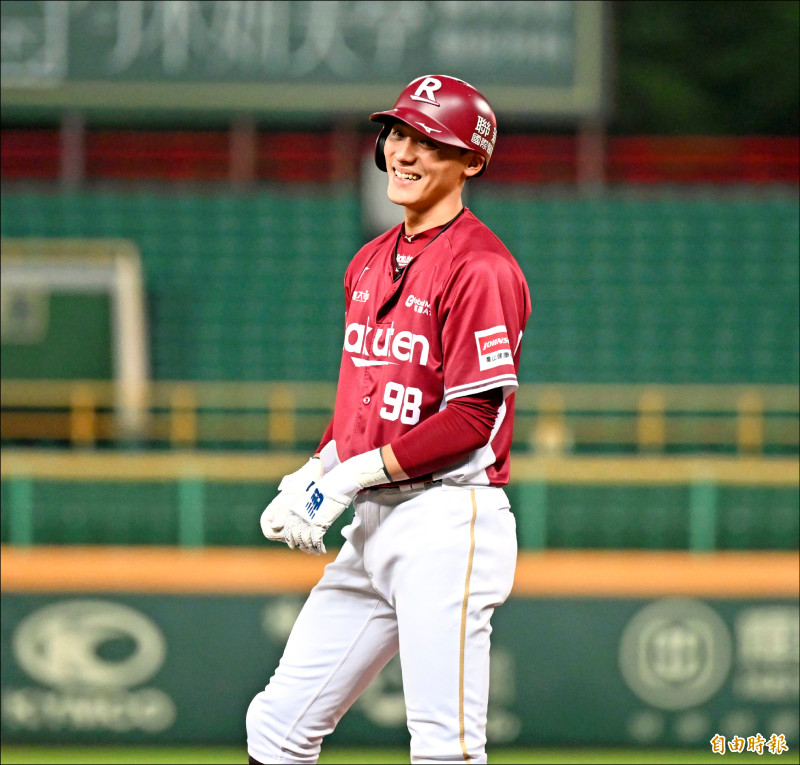樂天桃猿陳晨威雖單場雙安,仍無緣安打王及盜壘王。 (記者李惠洲攝)