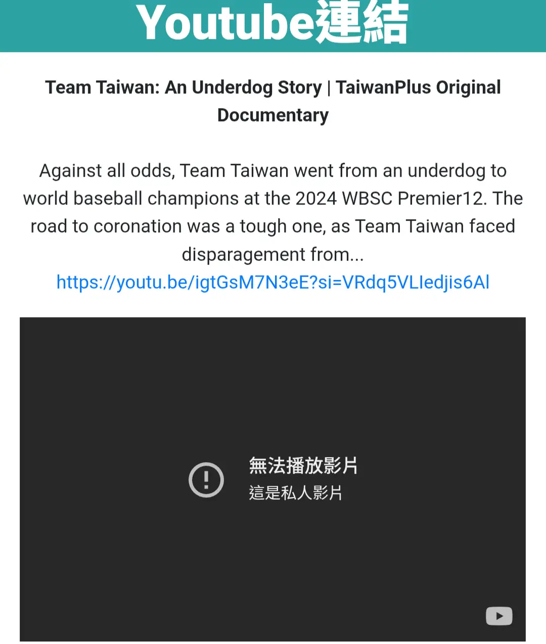 : : : 在介紹去年12強的比賽,中華隊的紀錄片