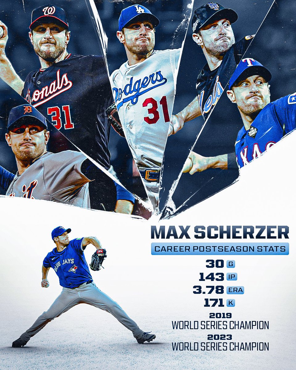 (Scherzer 季後賽6隊平紀錄, 最多隊先發投手紀錄, 季後三振榜第5位)