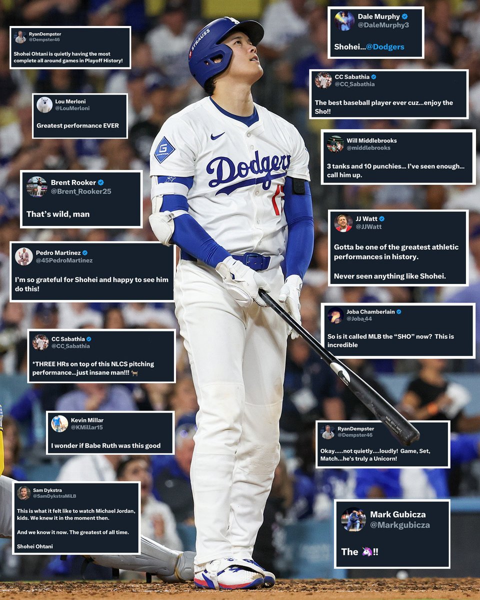 在這 NLCS 既先發登板投球,又打出3轟…真是難以置信!」