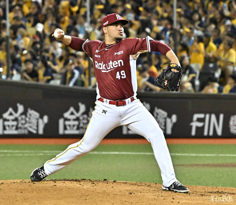 樂天桃猿先發投手威能帝。(記者陳志曲攝)