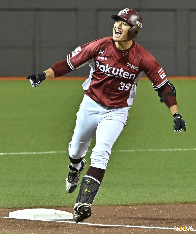 樂天桃猿成晉跑回第二分。(記者陳志曲攝)