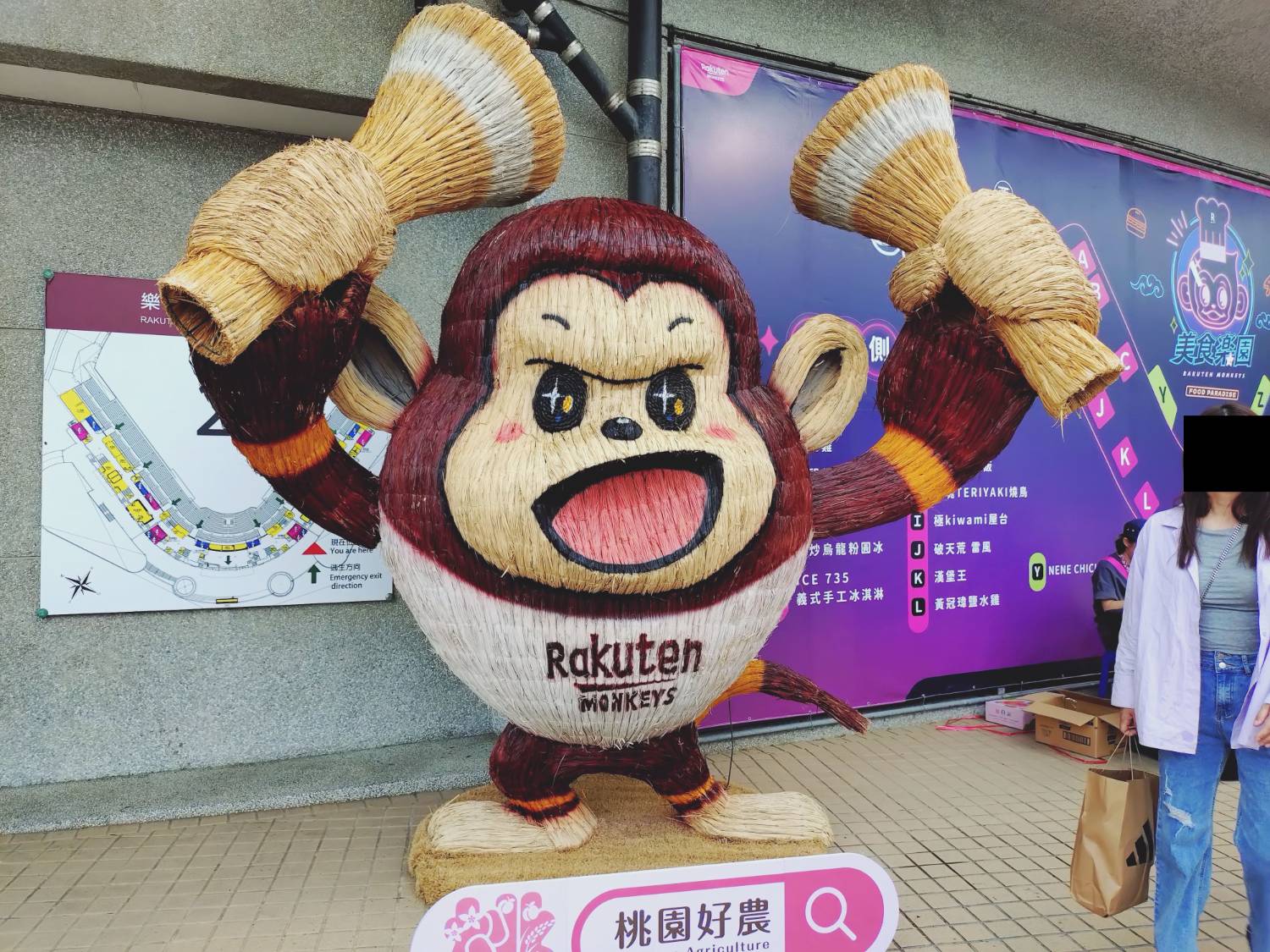 造的裝置藝術,另外驚喜加碼2座高達3米的草編樂天桃猿吉祥物Rocky與球隊棒球帽。農