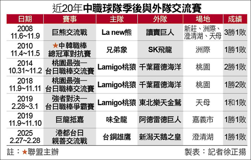 經典賽開打前有2支日職球隊相繼來台交流,除了中信兄弟日前宣布邀請的軟銀鷹,日本