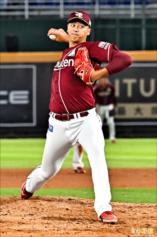 樂天金鷲台將蕭齊後援1局失1分。(記者陳志曲攝)