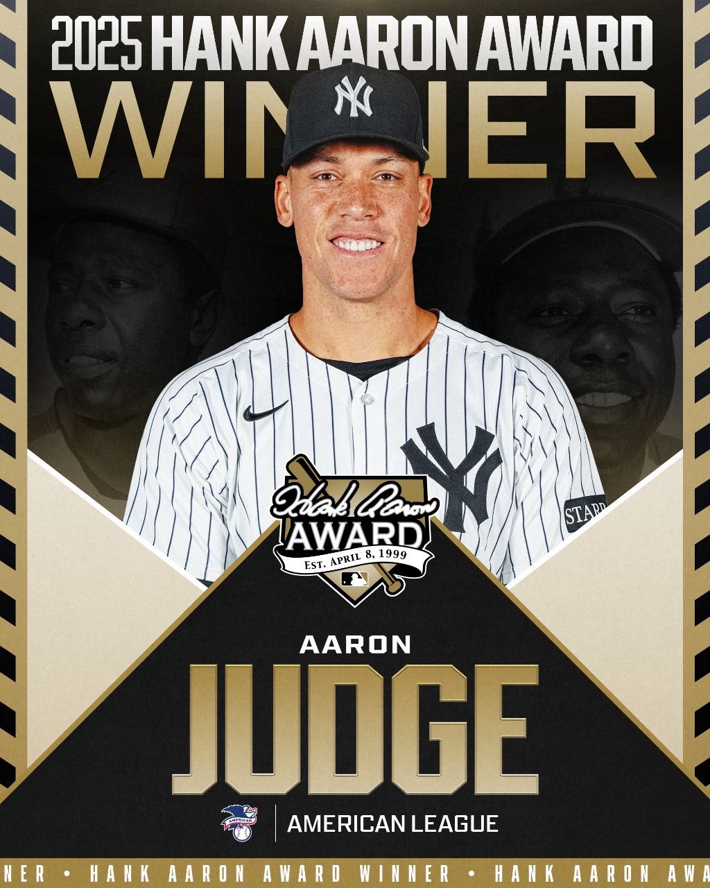 Aaron Judge is your 2025 Hank Aaron Award winner in the American League!