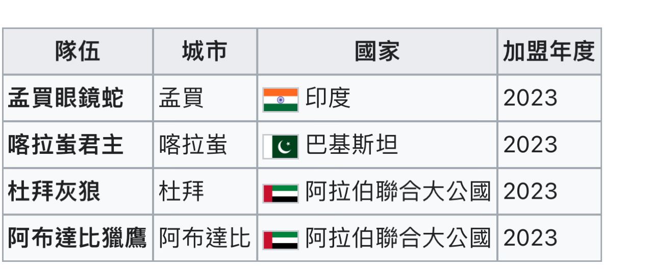 聯盟規劃,4支球隊名稱便包括印度的「孟買」、巴基斯坦的「喀拉蚩」,再加上UAE本地
