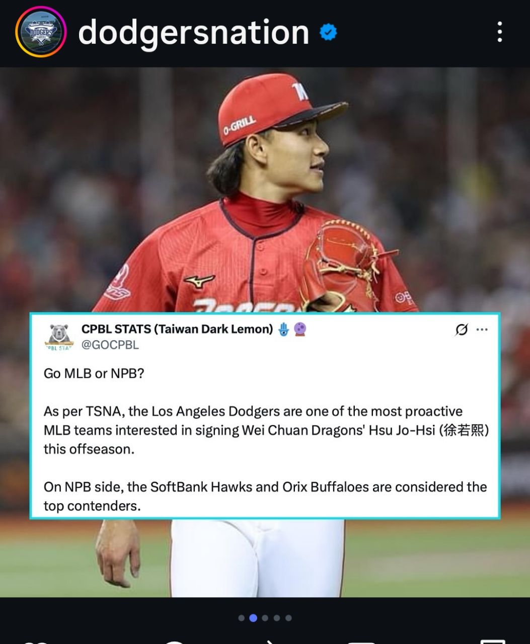 [新聞] 美媒曝道奇鎖定「台灣頂尖投手」徐若熙呼聲最高
