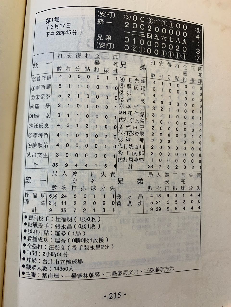 以下分享職棒元年年鑑照片(可以當古董了?)