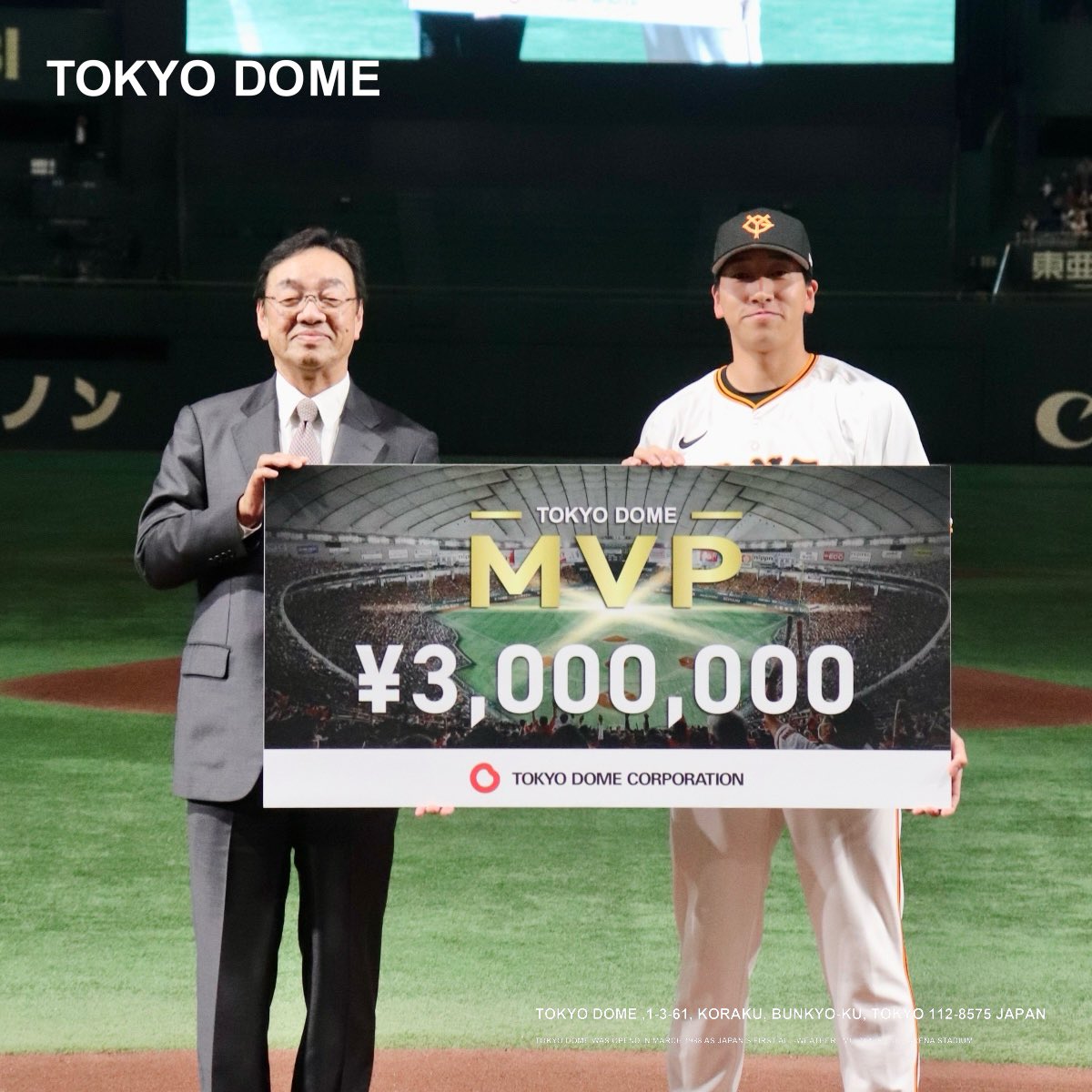 大勢獲選為2025年球季東京巨蛋MVP賞