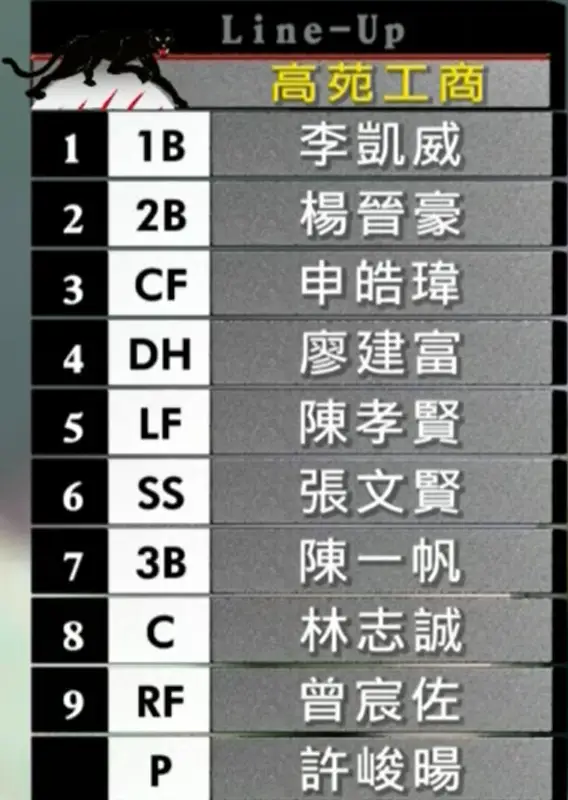 高苑工商先發打線