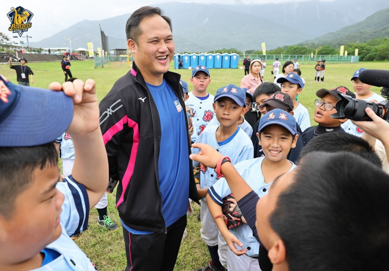 陳俊秀出席關懷盃少棒賽棒球教室。(中信兄弟提供)