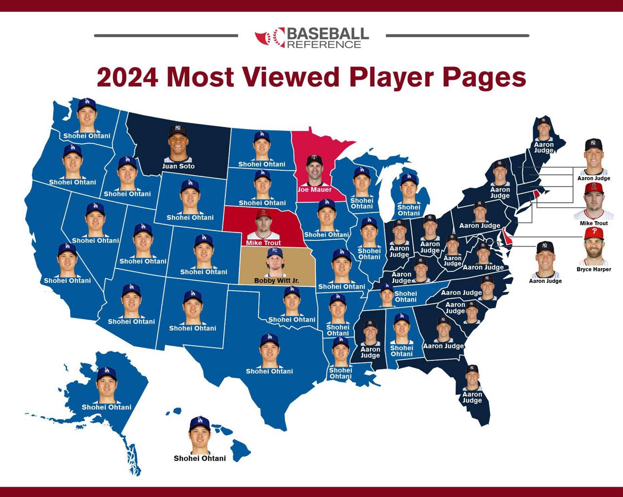 知名運動數據網站《Baseball Reference》公布了2025年球員頁面瀏覽量統計,這份榜單