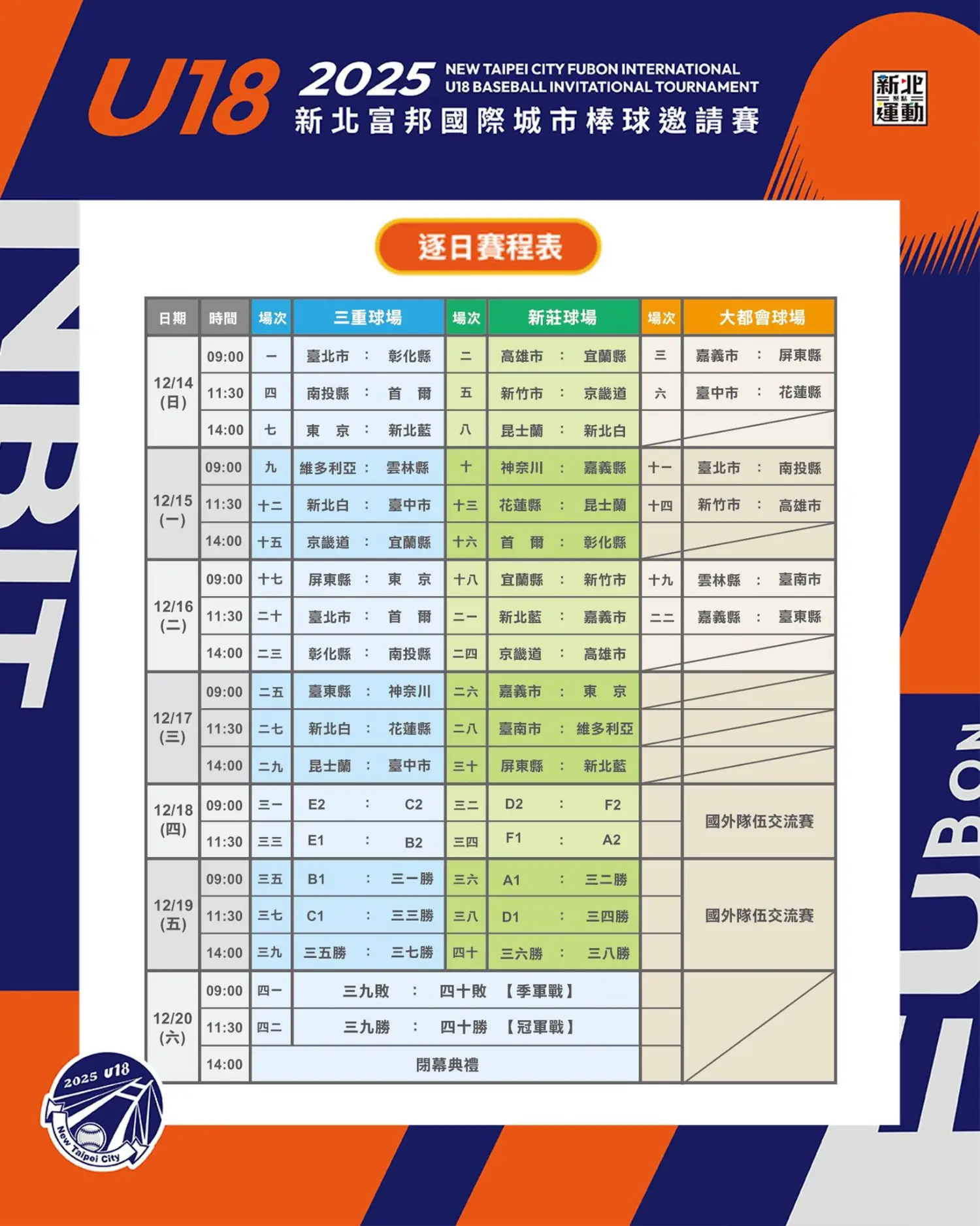 [LIVE] 2025新北富邦U18邀請賽 12/14賽程