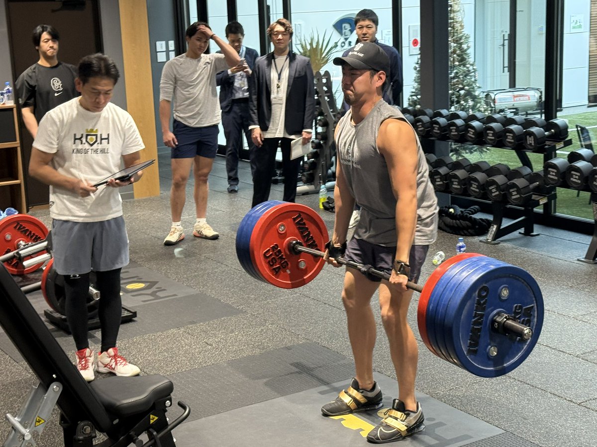 #菊池雄星 投手 の自主トレ公開取材(K.O.H)に来ています。菊池投手がデッドリフ