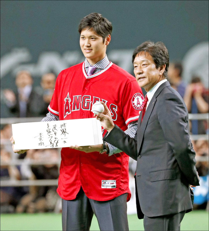 大谷翔平(左)2017年加盟天使,入札金2000萬美元。 (資料照)