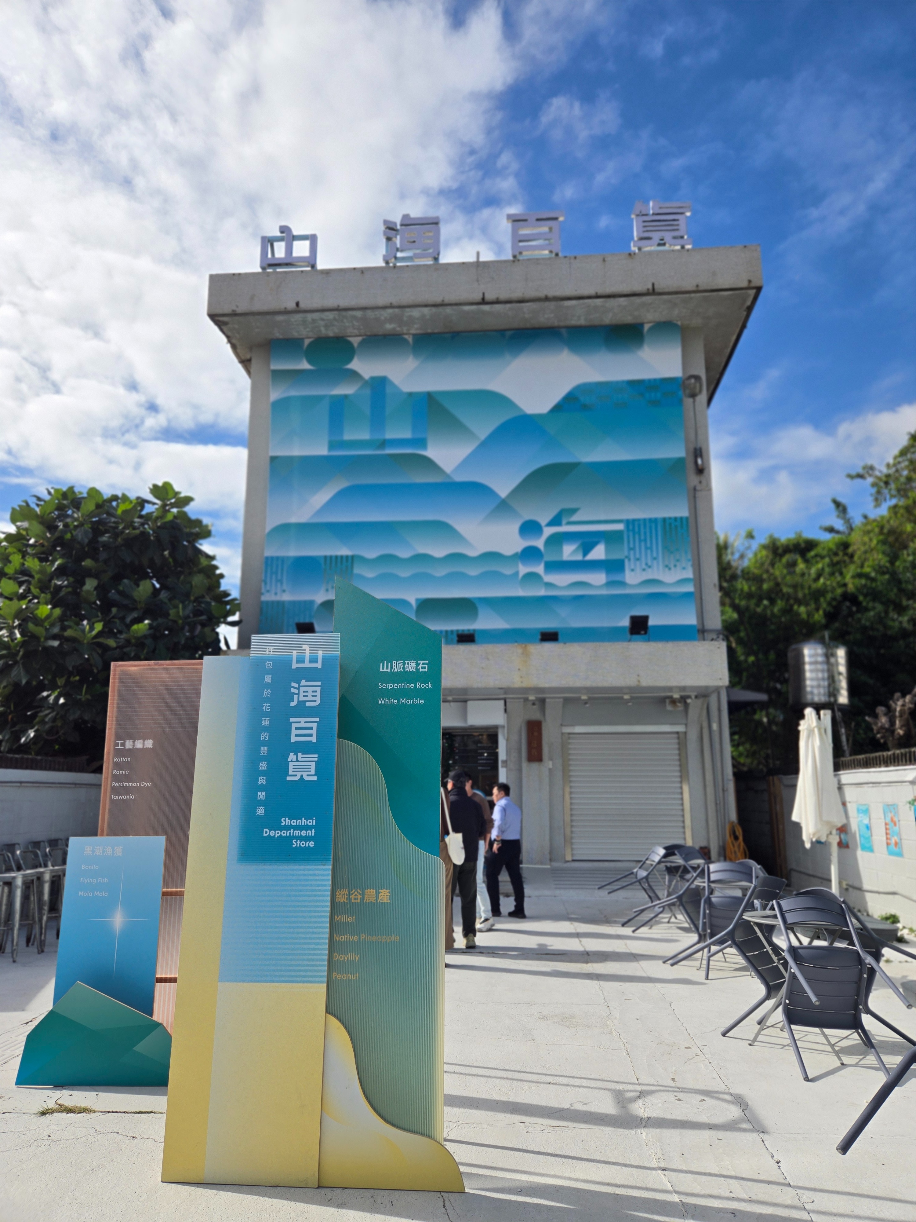 「山海百貨」原來是廢棄多年的台電大樓,改建後成外型深具設計感的地方選物商場。記