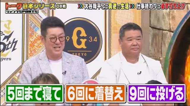 佐佐岡:救援投手都是在第9局上場嘛,所以我會睡覺睡到第5局,第6局醒來更換球衣
