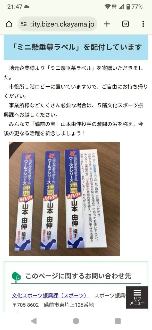 [分享] 去找岡山備前市的山本由伸人孔蓋