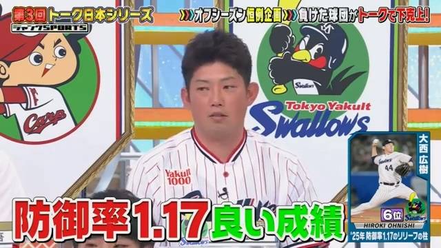大西広樹(養樂多隊救援投手):我的防禦率是1.17,成績算是還不錯。但是阪神隊