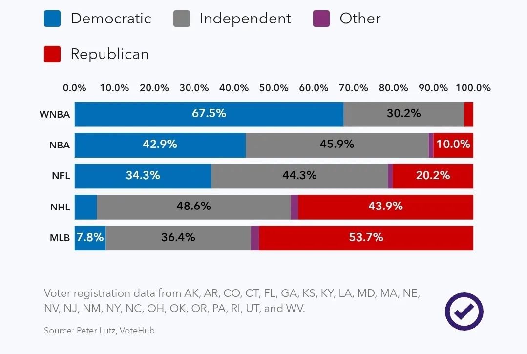 有美國民意機構調查了四大運動跟WNBA裡