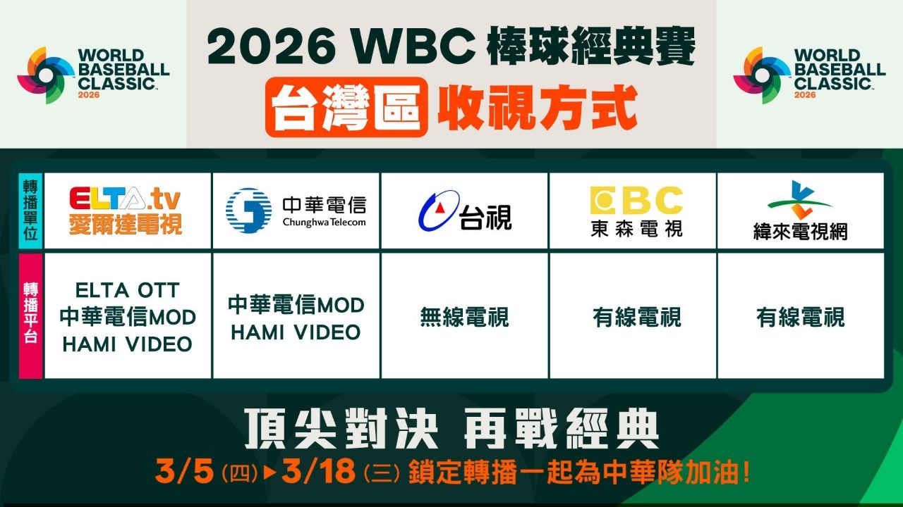 [分享] WBC台灣區收視方式