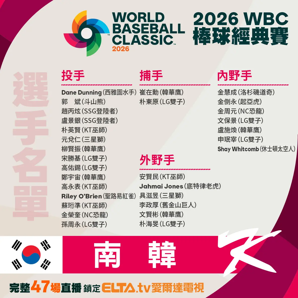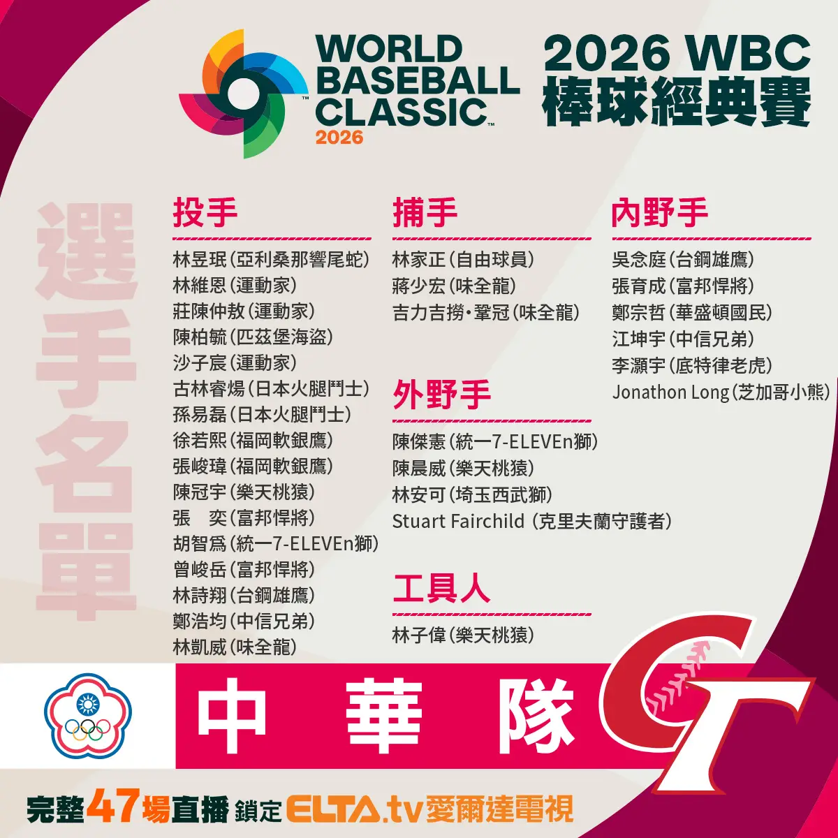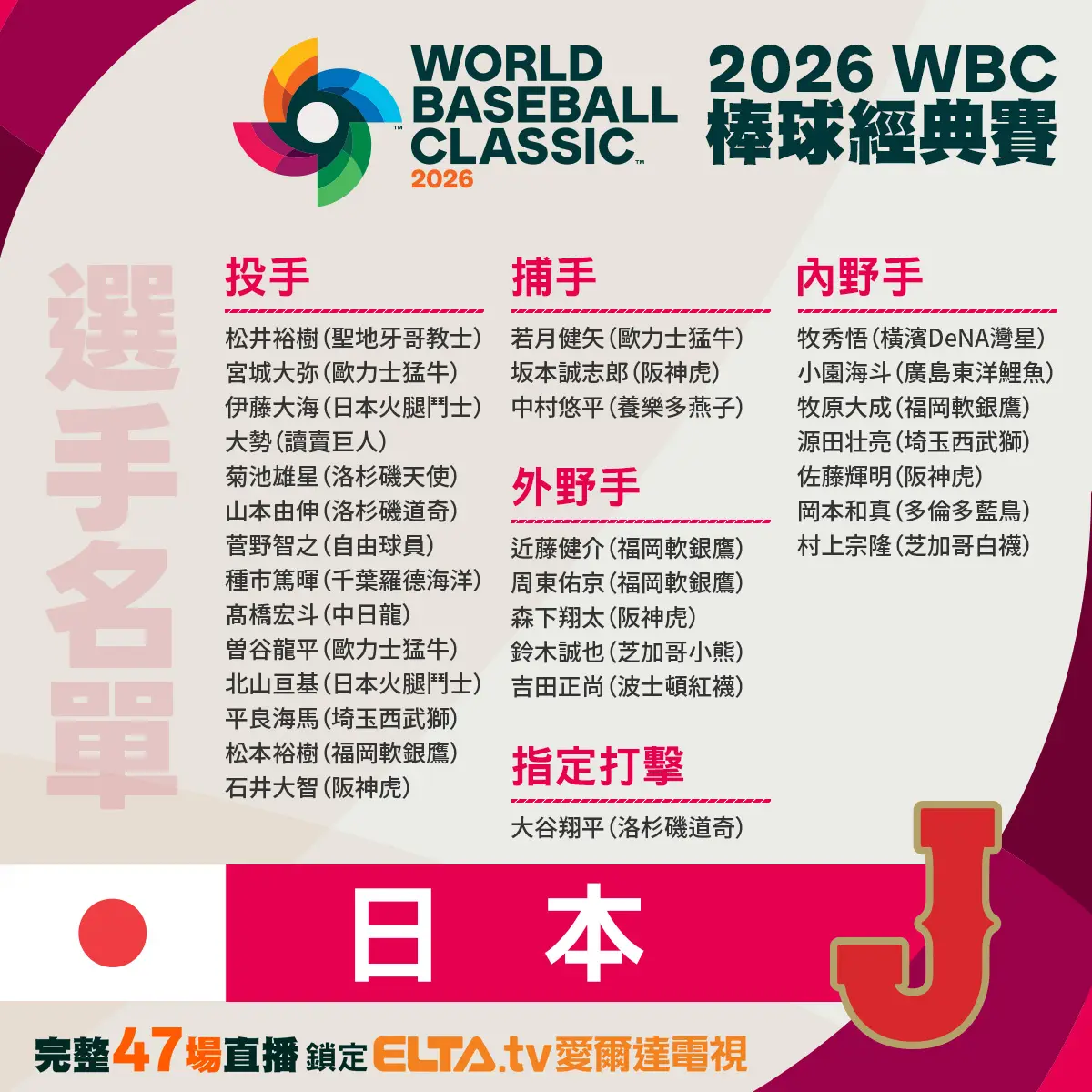 [分享] 2026年經典賽日本東京C組5隊30人名單