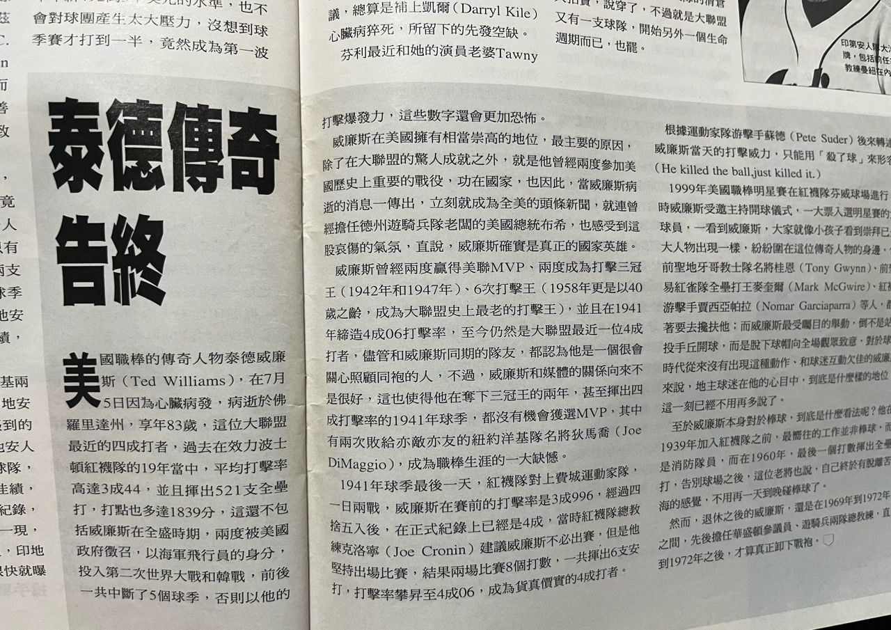 當年泰德威廉斯去世