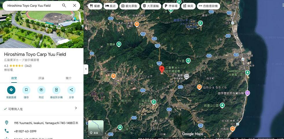 [閒聊] 廣島隊2軍,卻是在山口縣的由宇練習場