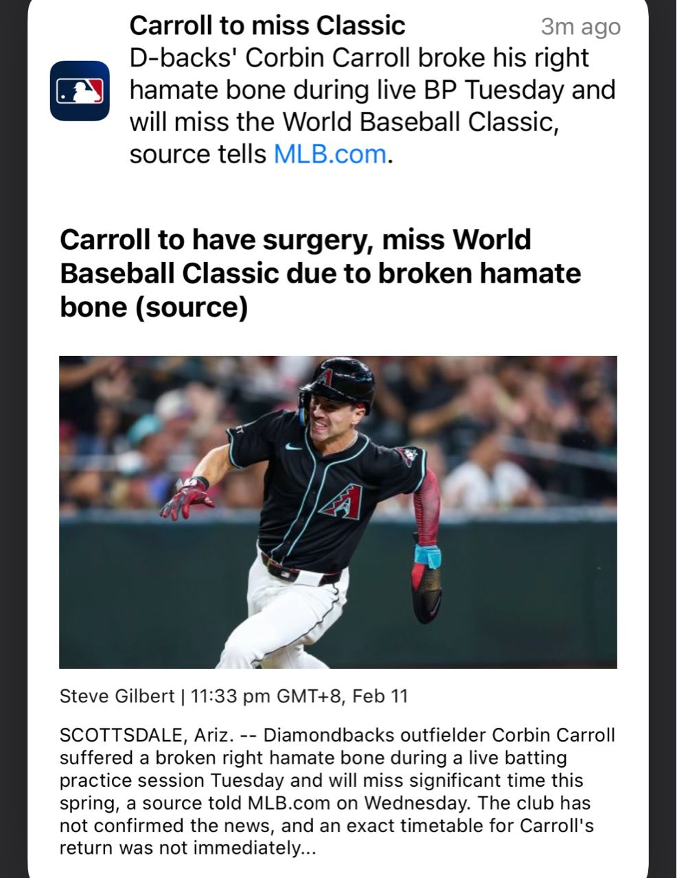[分享] (OP幫刪)Corbin Carroll 鉤狀骨骨已刪文