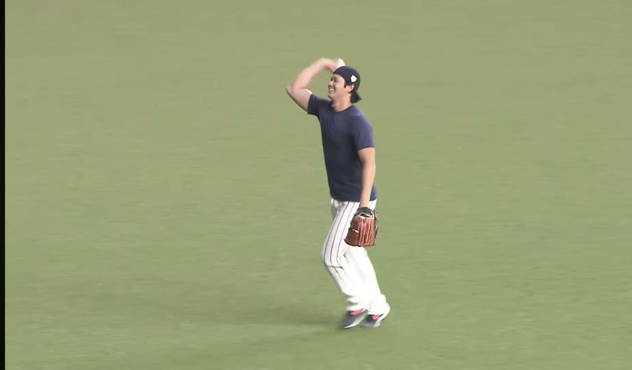 比較有趣的是目前大谷跟著鈴木誠也一起在中外野接球
