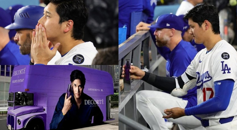 大谷翔平先前在球場休息區被捕捉到拿出保養品「小紫瓶」往臉上塗抹,畫面在社群瘋傳。