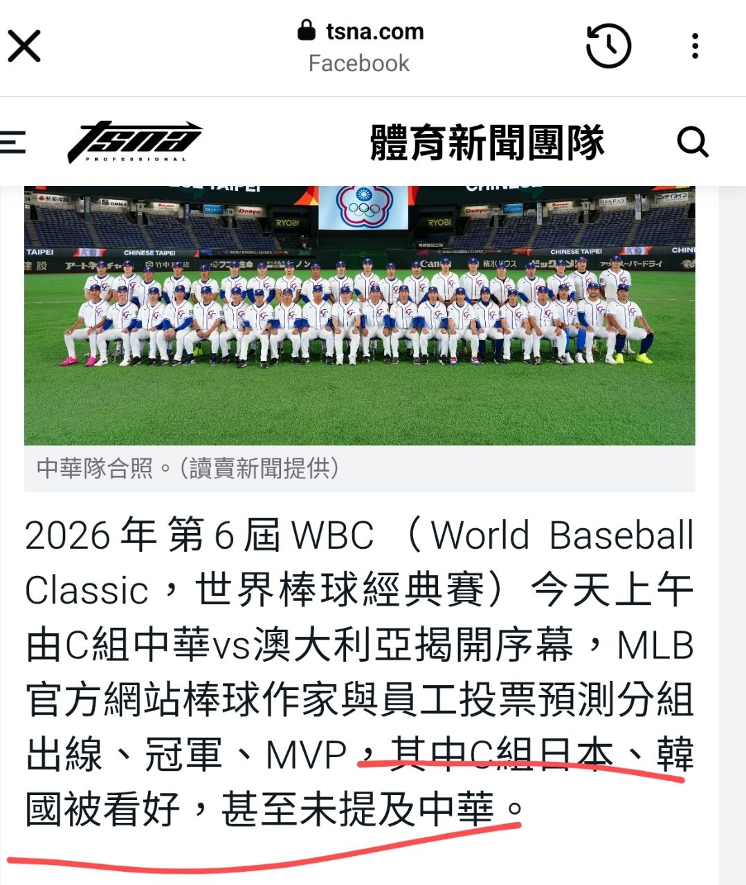C組預測由 日、韓取得8強賽門票,中華隊甚至被看沒有