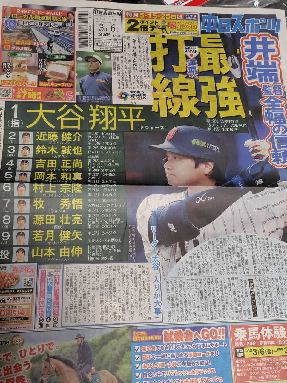 [分享] 2026WBC日本隊G1先發打線