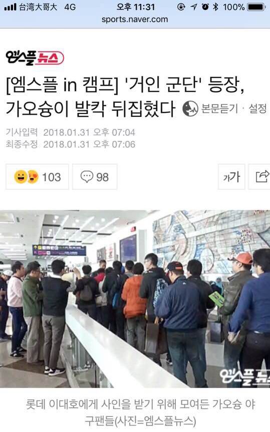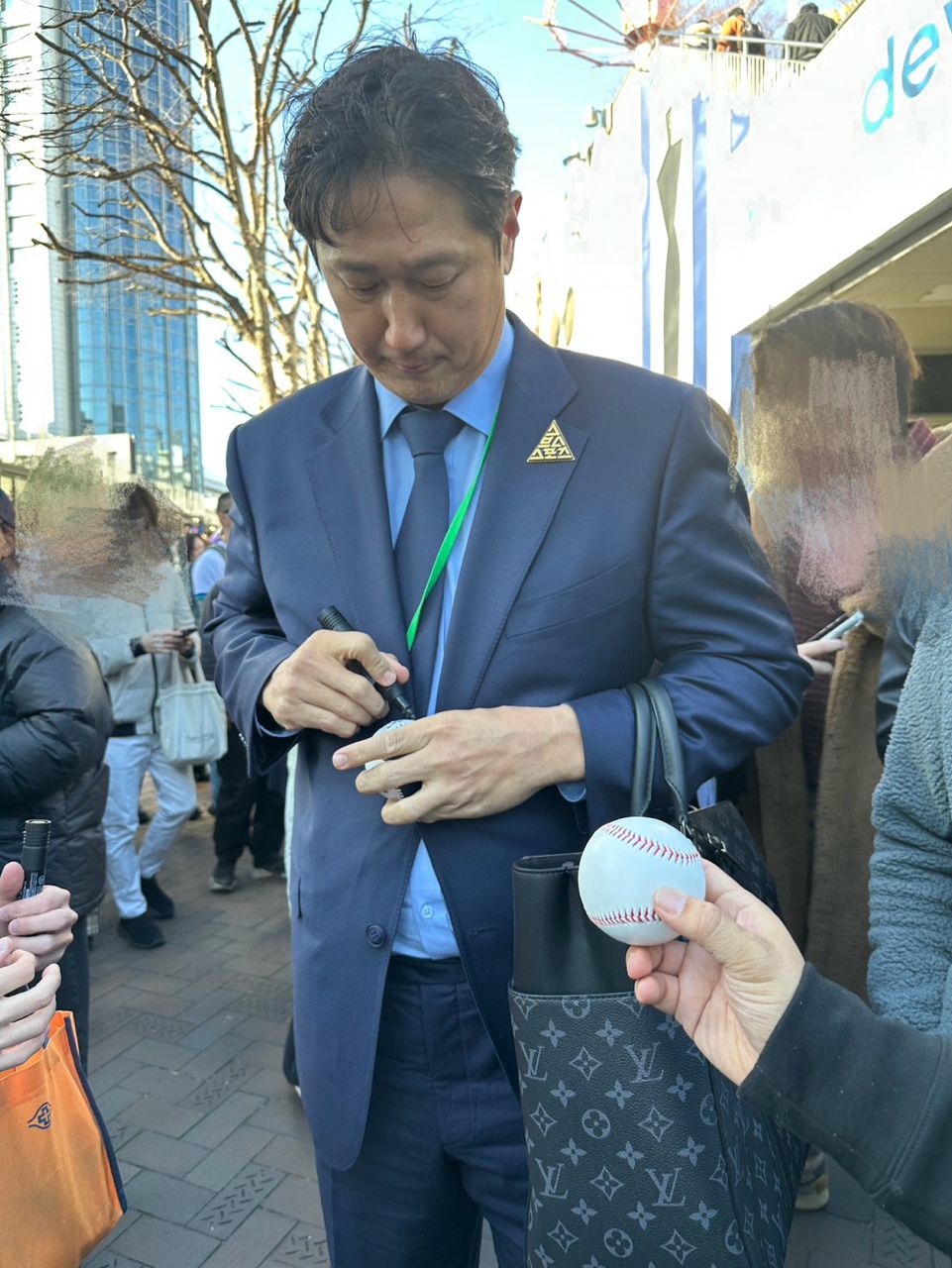 李大浩看起來也是有點無奈,最後還是幫他簽了名。這時候圍觀的球迷越來越多,李大浩