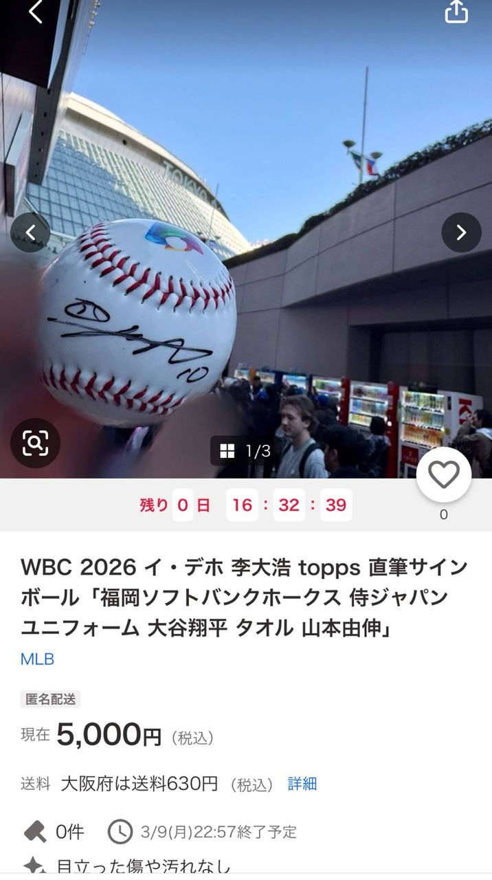 李大浩幫他簽的那顆球,已經被上架拍賣了。