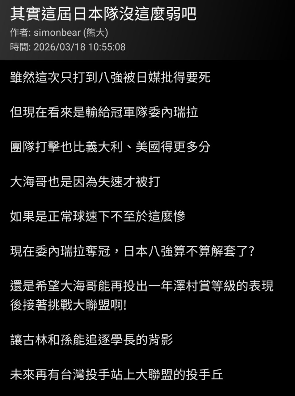 以後WBC各位會慢慢習慣日本不在四強的感覺的