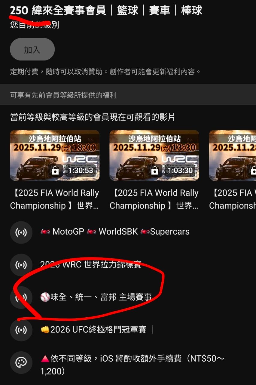 2.是否也能訂閱緯來Youtube會員100元/月,收看到兄弟、味全、富邦的比賽;加上本來家人就有用電視盒訂閱Hami video看電視運動館的新聞,也能蹭到統一、台鋼、味全、富邦的比賽,以下是看置頂版友整理的表格。