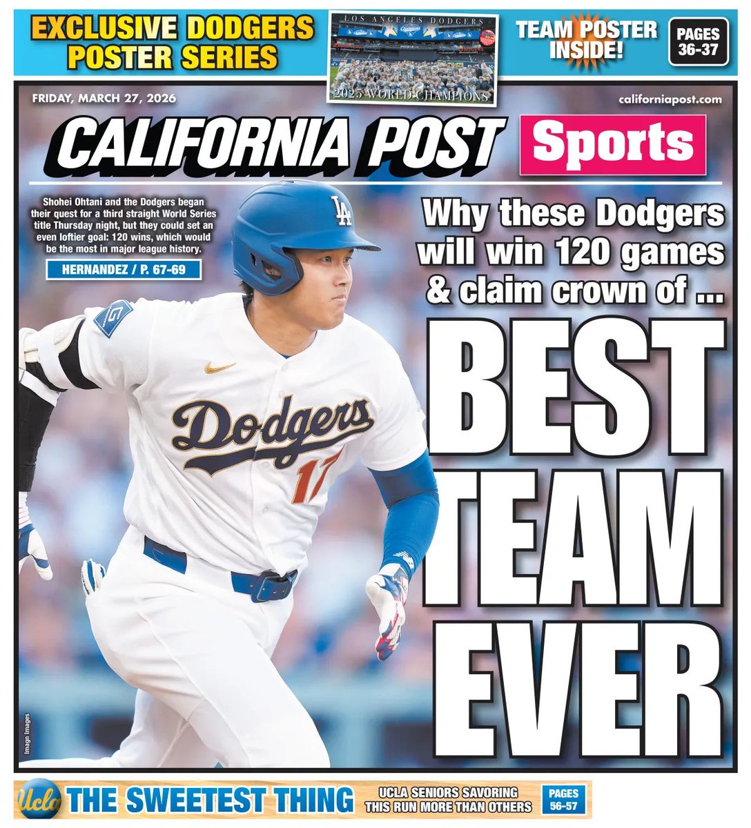 標題:‘Best’ Dodgers team could win 120 games — here’s how