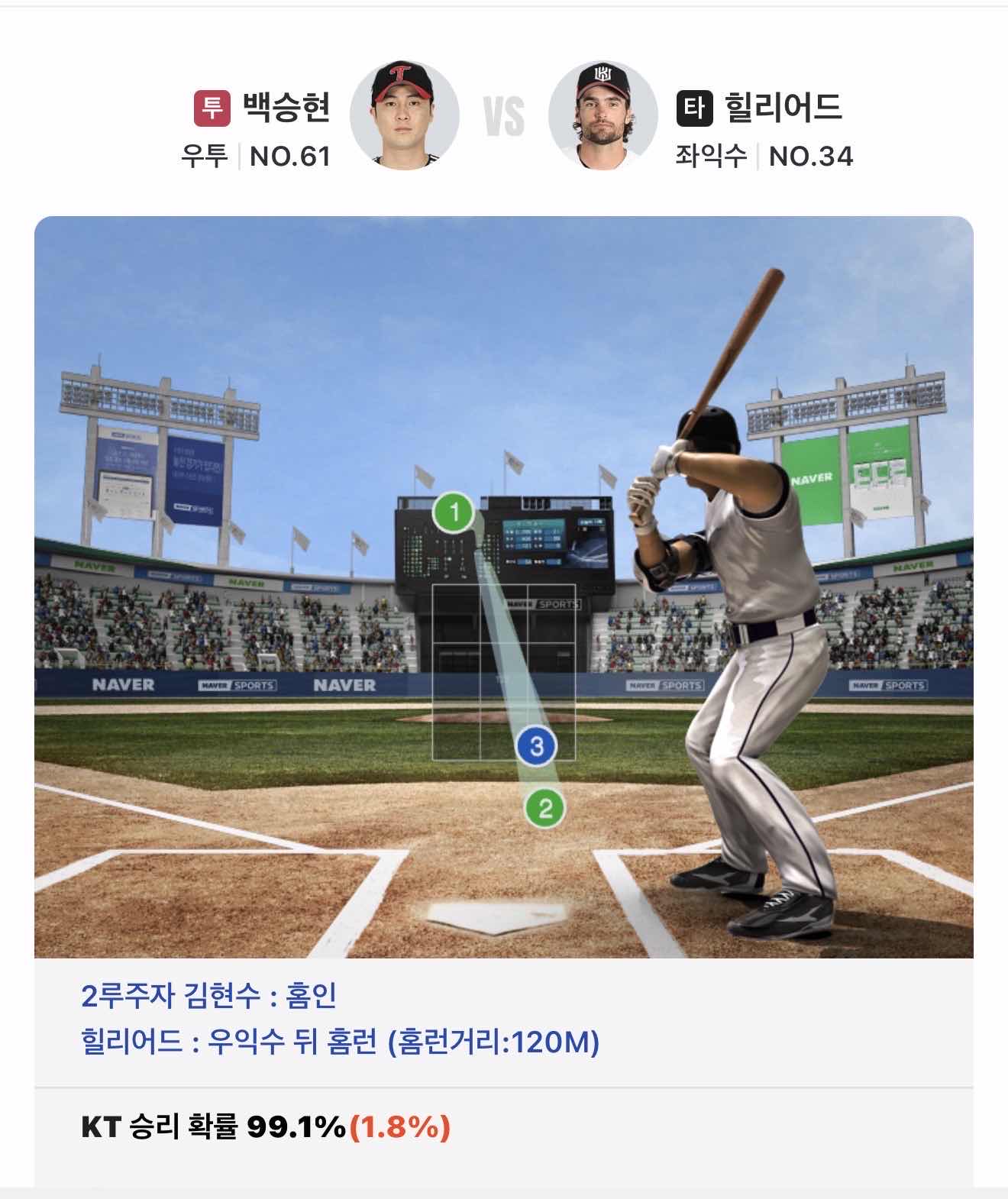 7上 KT Wiz新洋砲 Sam Hilliard 一發右外野兩分砲(飛行距離:393 英尺),