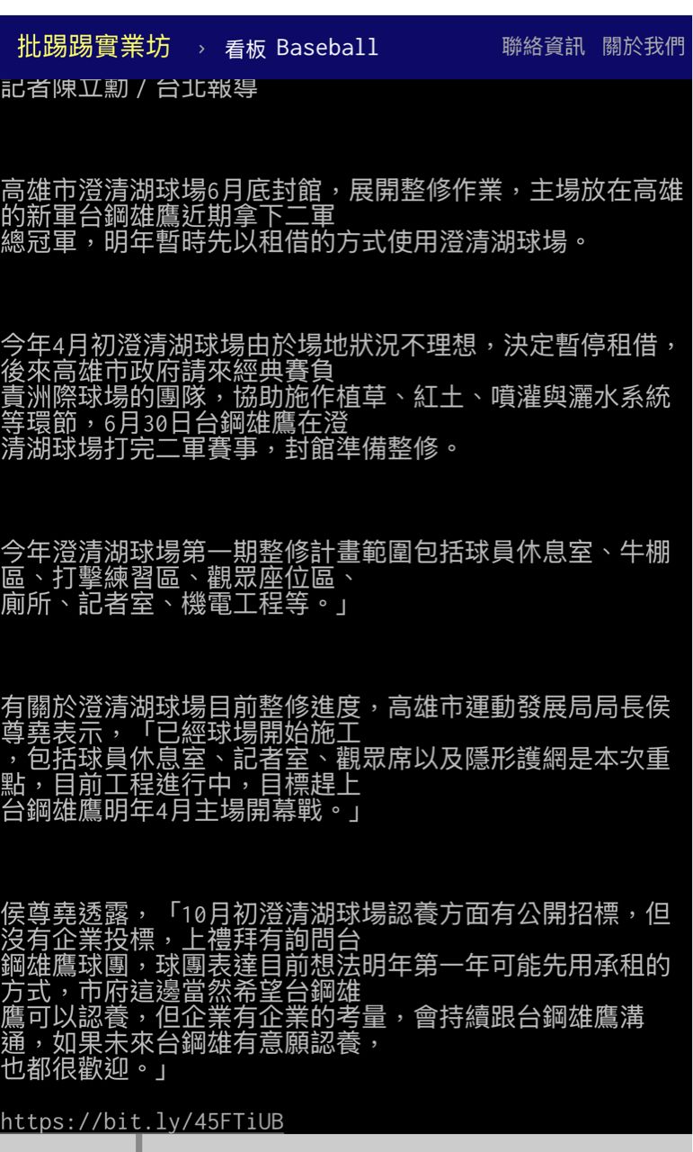 Re: [新聞] 不是台鋼 澄清湖棒球場運專區由台壽獲最優申請人