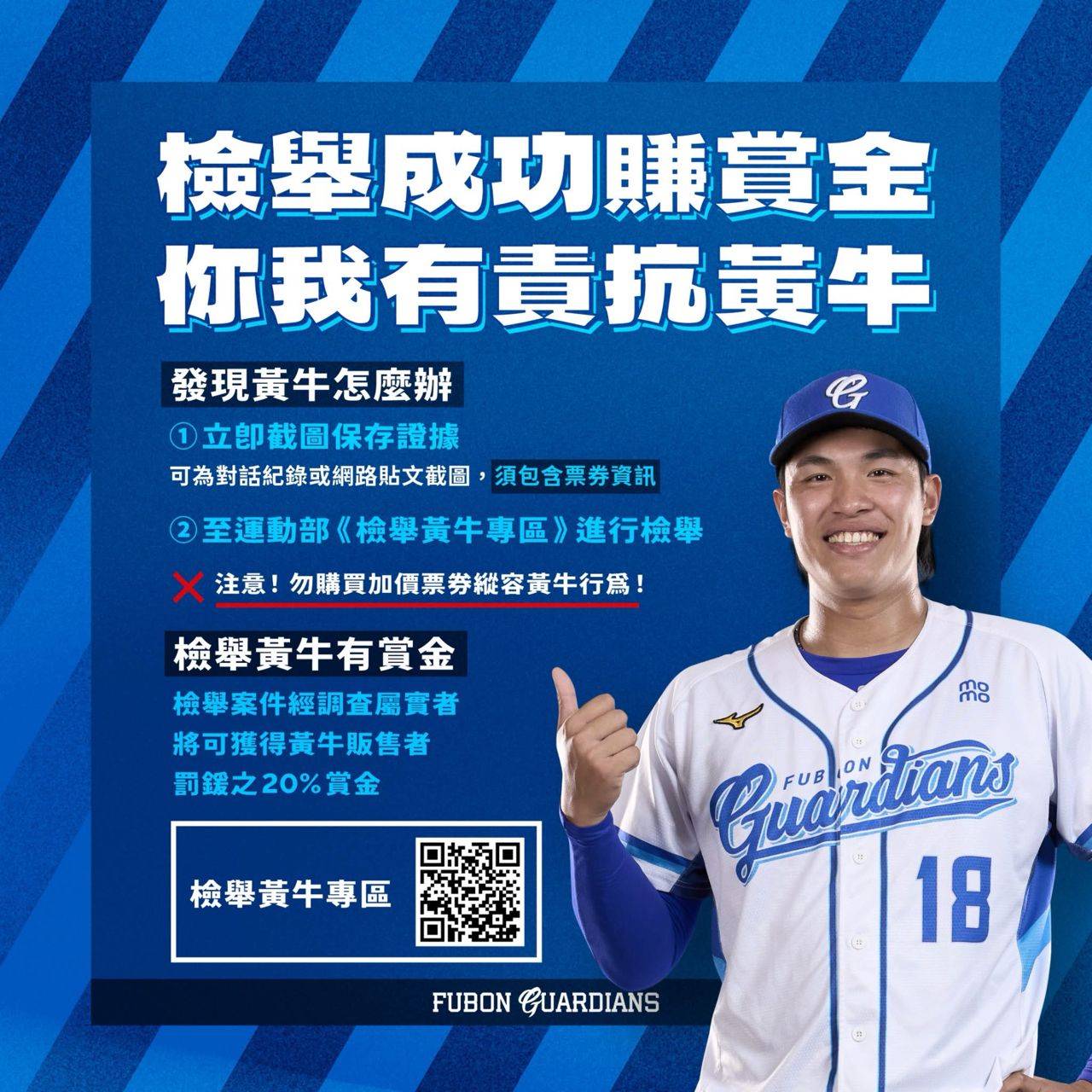 發現黃牛出沒,請保存證據至運動部《檢舉黃牛專區》進行檢舉,檢舉屬實還有賞金