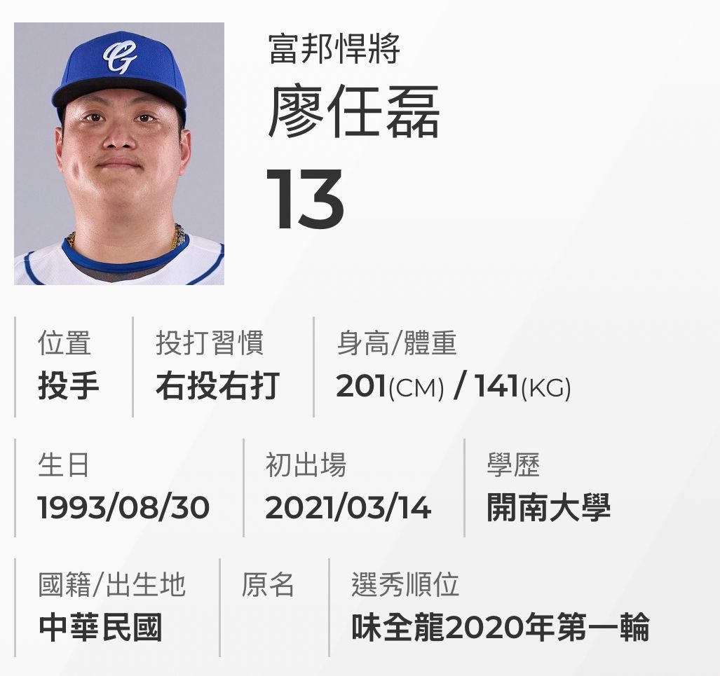 今天廖任磊在八局領先一分時登板